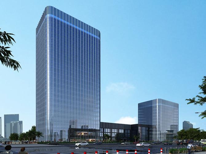 金蘋果電子科技工業(yè)廠區(qū)玻璃幕墻工程,位于深圳市布吉鎮(zhèn)布瀾路甘李科技園,為地下3層,地上20層,建筑高度97米,總建筑面積75000平方米,其中建筑幕墻面積為28000平方米,由中航裝飾設計工程有限公司承建。