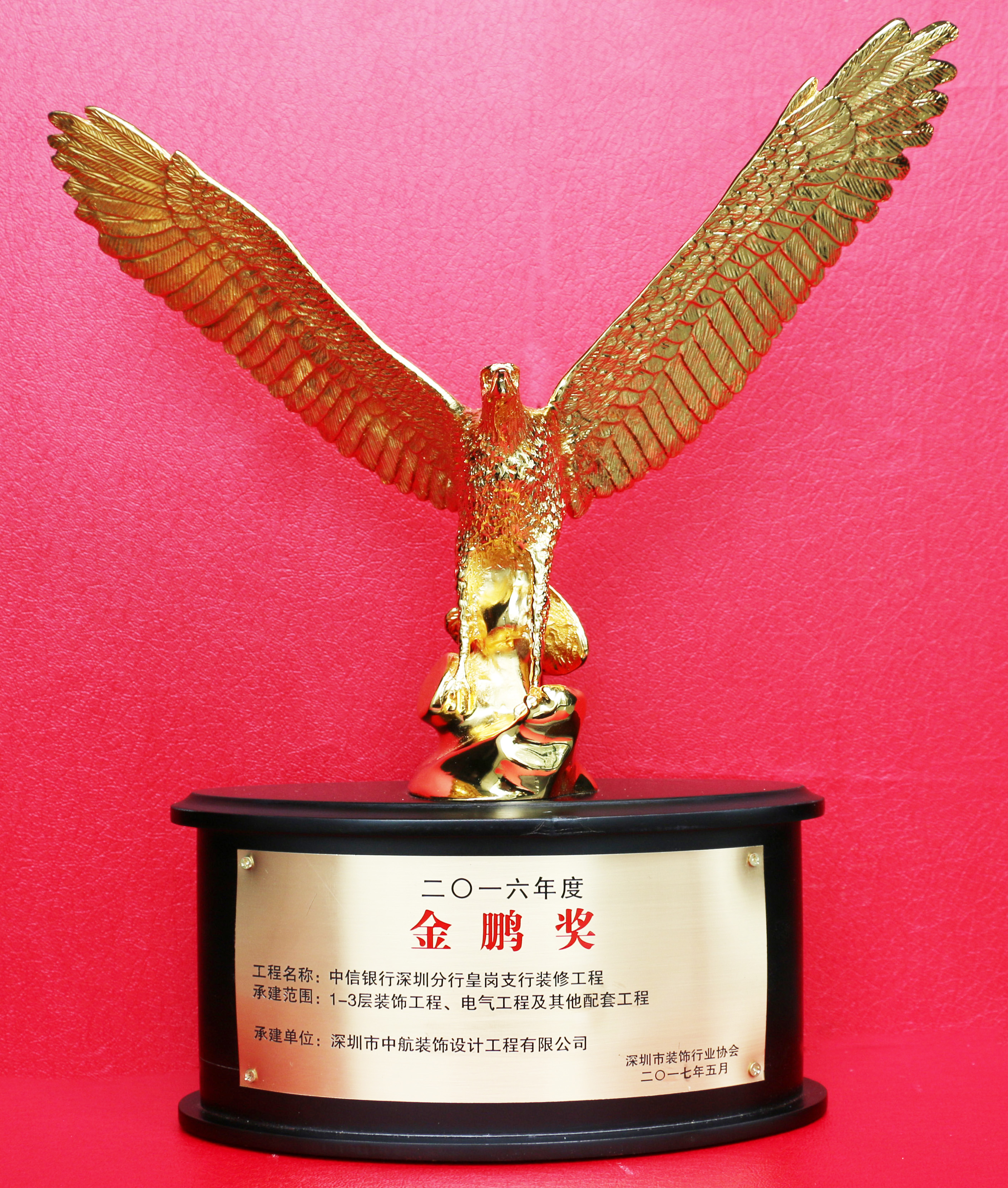 近日,代表深圳裝飾最高榮譽(yù)的2016年度深圳市裝飾工程“金鵬獎(jiǎng)”評(píng)比揭曉,中航裝飾承建的中信銀行深圳分行皇崗支行裝修工程、文谷莊園羅湖組團(tuán)外墻石材施工工程兩個(gè)項(xiàng)目雙雙獲獎(jiǎng)。