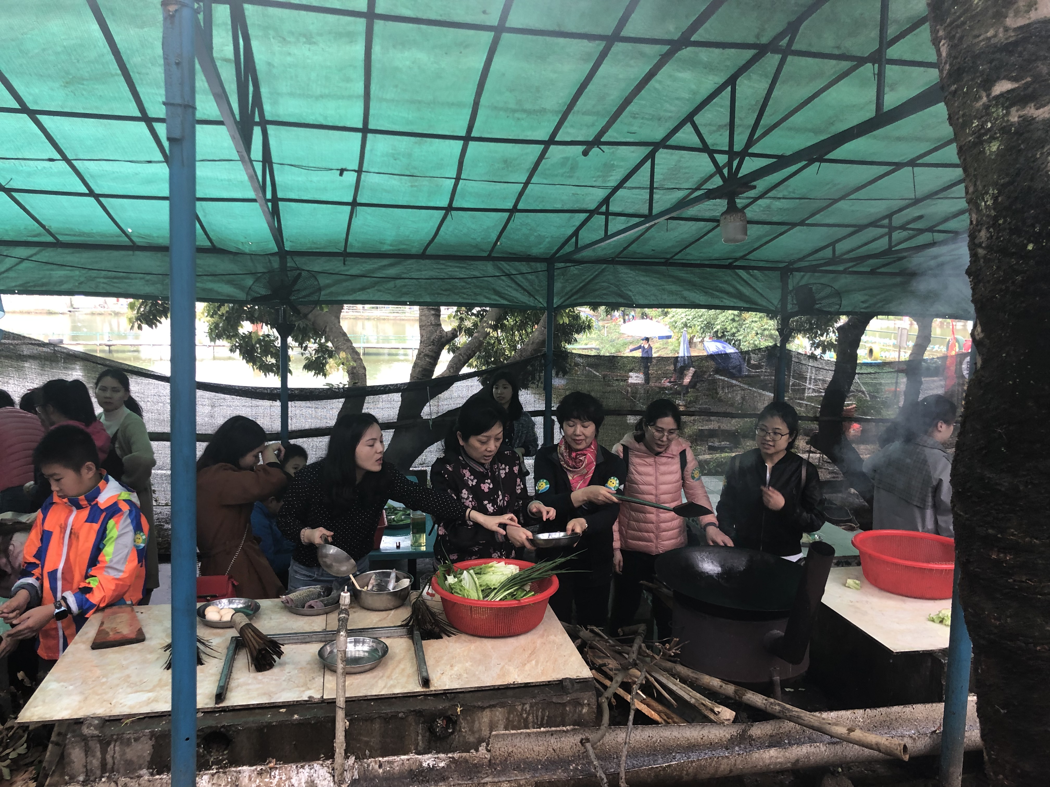 ? ? ? ?中午進(jìn)行了快樂(lè)生活田園野炊烹飪大體驗(yàn),雖沒(méi)有“烹羊宰牛且為樂(lè),會(huì)須一飲三百杯”的豪情與奔放,但是我們也是體驗(yàn)了親自抓魚(yú)、宰殺、生火、烹飪的樂(lè)趣,大家圍坐一堂,品嘗由各個(gè)同事間的烹飪高手做出的美食。