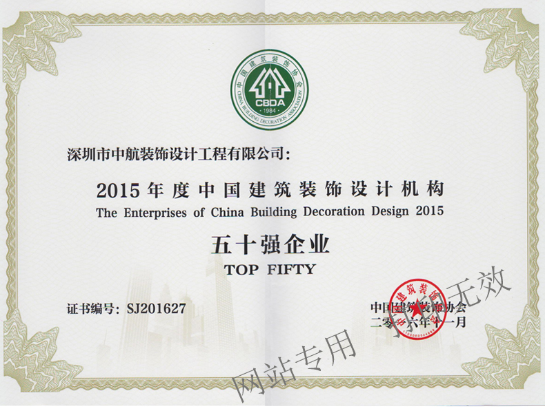 中國建筑裝飾設計機構五十強企業(yè)評選活動由中國建筑裝飾協(xié)會主辦,中國建筑裝飾協(xié)會設計委員會承辦,根據(jù)《中國建筑裝飾設計機構五十強企業(yè)評介活動辦法》所確定的原則和工作程序,由評介委員會專家組、工作組,對參評企業(yè)提供的各種數(shù)據(jù)及相關資料進行嚴密統(tǒng)計核算,經(jīng)細致縝密的審核,評選出綜合得分前五十名的企業(yè)。此項評選活動,具有中國建筑裝飾設計機構設計水平和綜合實力評定的最高權威性。