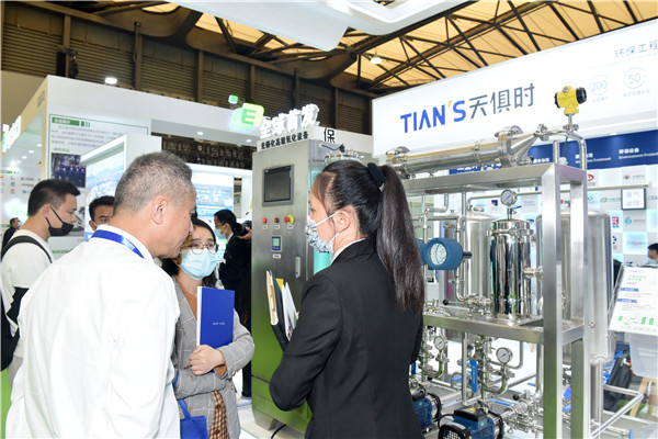 為了讓更多的客戶近距離了解天俱時集團的研發水平和專業能力,在2021年上海環博會現場,天俱時也帶來了其全球首發的新品——光催化高級氧化設備。