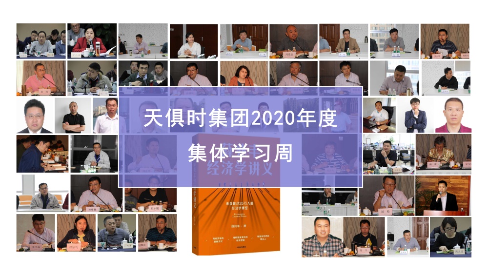 疫情下,無法行走丈量大地的時候,從書籍里耙梳常識和灼見,是對話世界的最好方式。金秋十月,天俱時集團2020年度集體學習周如期而至,在這樣一個特殊的時期里,集團M12級以上的50位中高層管理者相聚云端,通過自學品讀《薛兆豐經濟學講義》這本大眾經濟科普讀物的方式,共同開啟了這場充電蛻變之旅。