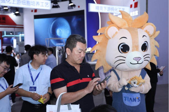 在本屆藥機展上,天俱時集團的品牌吉祥物—“天小獅”首發亮相,他將天俱時集團的形象擬人化。飄逸的鬃毛象征著天俱時集團二十五年來永不停歇,向前奔跑的姿態;尾部的點綴則化用了品牌logo中的標志性元素,意味著靈感的誕生和創新的力量。熱情、勇敢的天小獅也憑借自身可愛的形象吸引著眾多觀眾前來打卡。